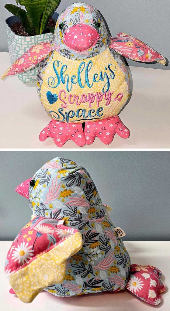 Shelly Hibbs made this cute Best Wishes BABY BIRD for her new craft “she-shed” being built in the spring, and used the large “no-seam” tummy space for embroidery!