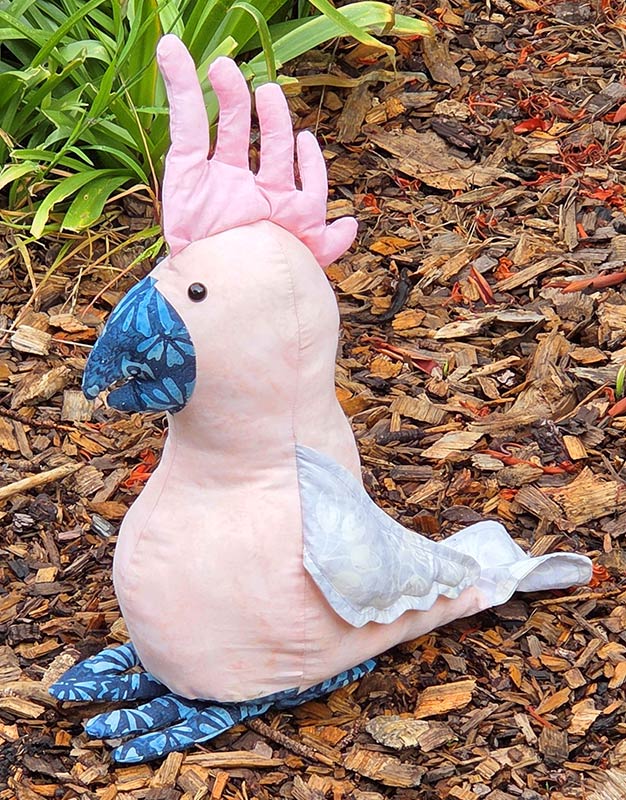 On the opposite side of the stretchy fabric spectrum is quilting cotton, which does not stretch. However, unlike minky or fleece, quilting cotton comes in lots of delightful small prints like this cockatoo print fabric that Glenda Muchow used for her Charlie Cockatoo!