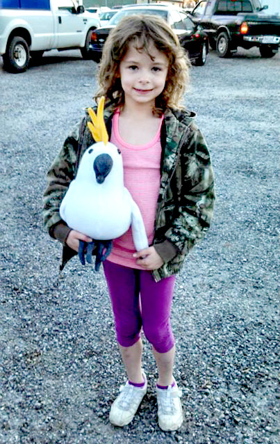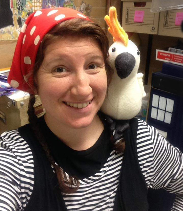 Pirates like parrots, but did you know they’re also charmed by cockatoos? Here is a fun photo of Stephanie Bullock posing with the Charlie Cockatoo she sewed as part of her pirate outfit for World Book Day!