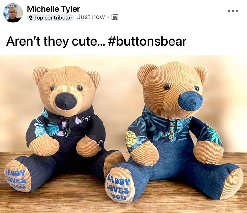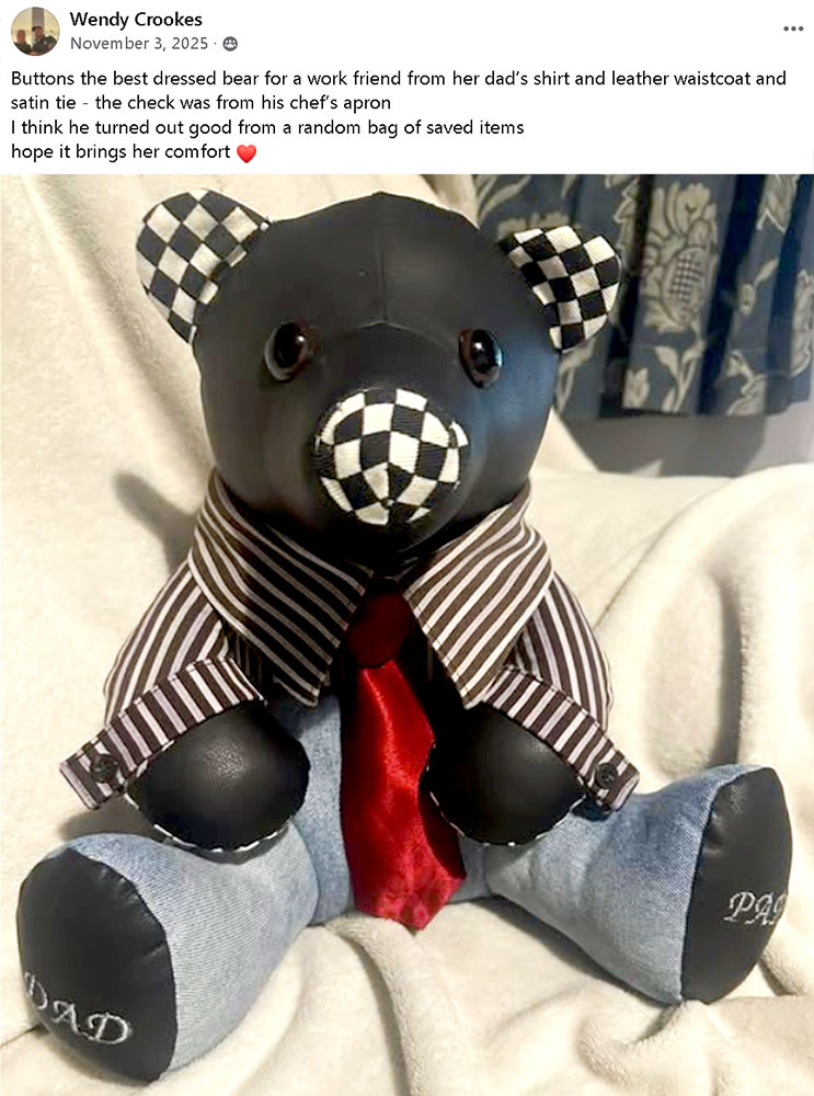 And this Buttons BEST DRESSED Bear was sewn by Wendy Crooks who included a chef’s apron to make a very precious keepsake bear.