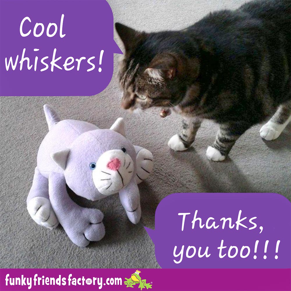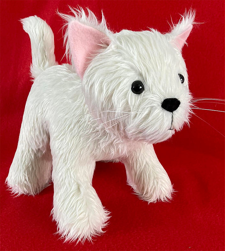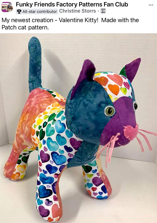 Lindsey Mortimer used white fishing line for the whiskers on her beautiful, realistic Patch Pussy Cat that she sewed as a precious pet replica. I had to agree with the comments that I think this is one of the MOST REALISTIC Funky Friends toys I’ve seen to date!😻