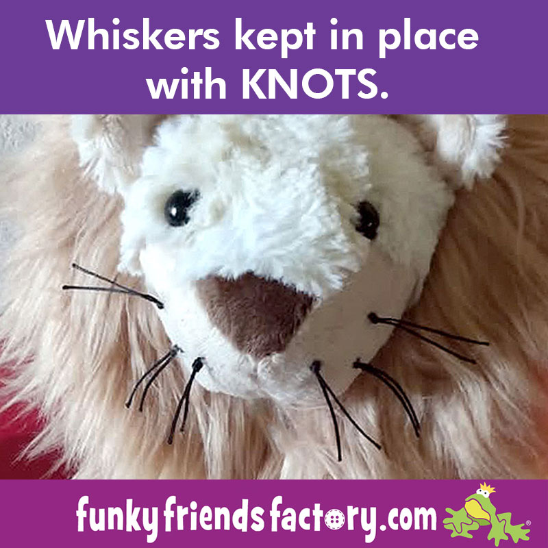 Check your country’s toy safety guidelines related to the type and length of whisker material you choose. Just to be safe, don’t give toys with whiskers that protrude from the toy to children under 3 years old. Check out this blog post for more toy safety information HERE.