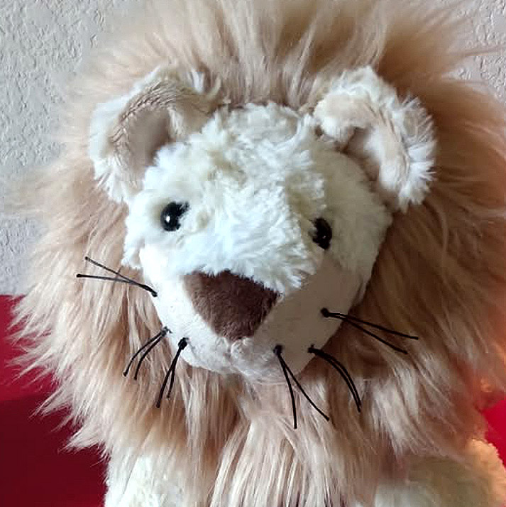 Just like the name suggests, waxed thread comes already covered in a wax coating to make it firmer than regular thread. This is a specialty item that can be ordered from or purchased at Teddy bear supply stores. Lynn Vanderheiden-Antle used waxed thread to add some cute chunky black whiskers to her fluffy version of Larry Lion.
