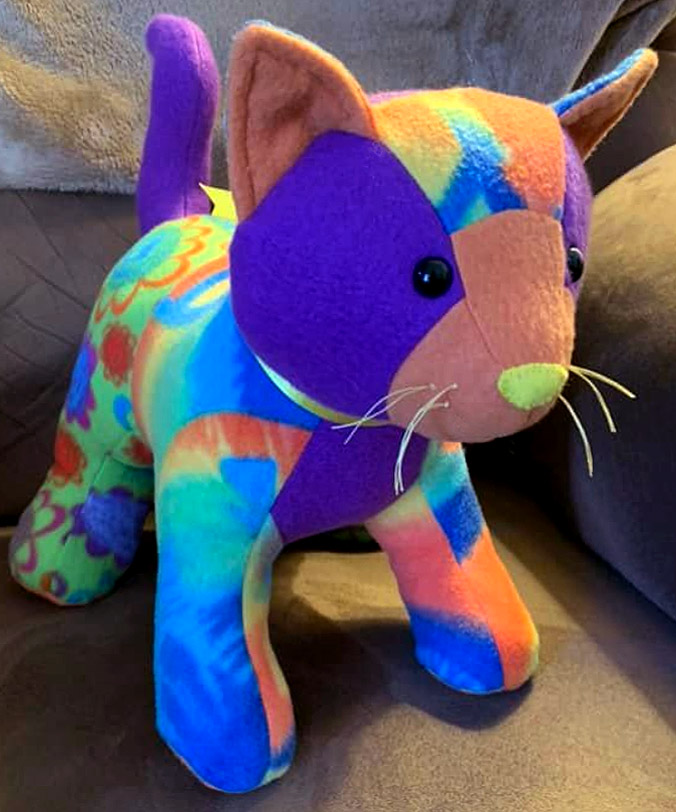 Susan Celestian sewed this keepsake Patch Pussy Cat and embroidered the whiskers with long white stitches.
