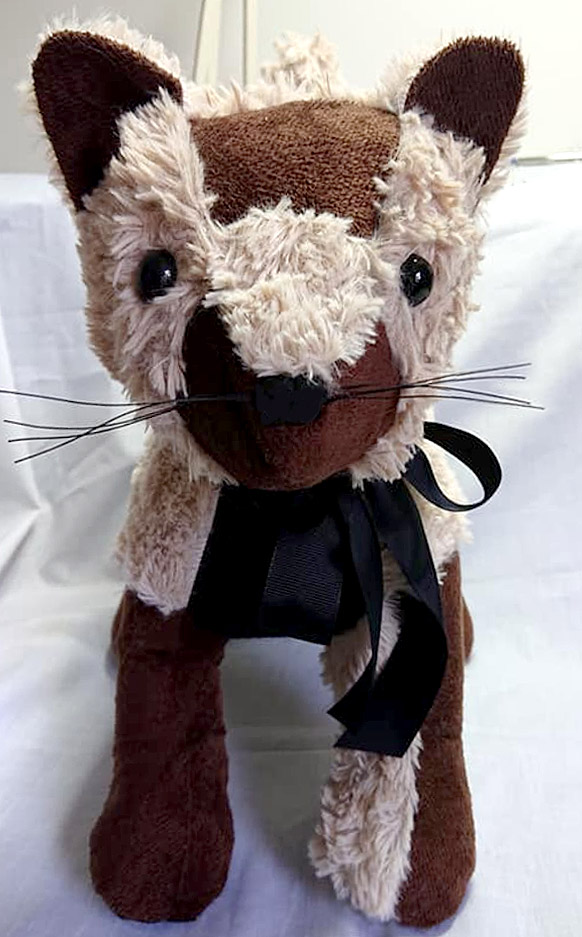 Nylon thread is a realistic but scratchier option for whiskers than those listed above, so it’s best not to use it for children with sensory aversions to anything “spikey.” James Kemp sewed this precious pet keepsake from a beloved pet’s bedding when it passed. The whiskers were made with a thick black nylon thread.
