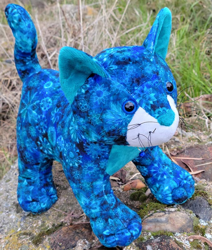 Jo Ann Carroll used black fishing line for the whiskers on her beautiful blue digital cuddle Patch Pussy Cat.