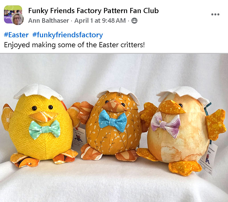 Ann had so much fun sewing her Egghead the Easter Chicks! ~>